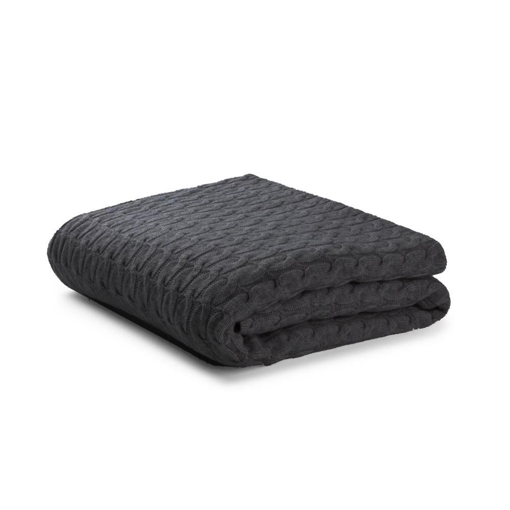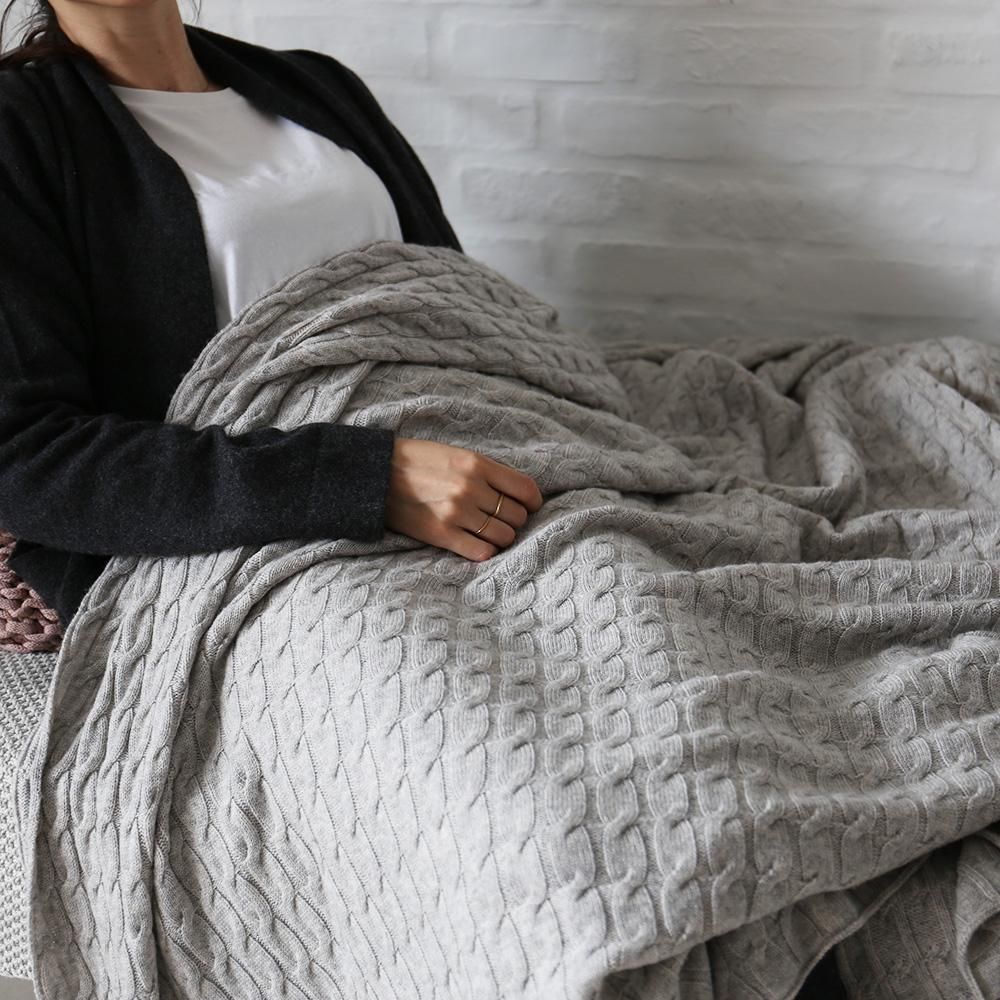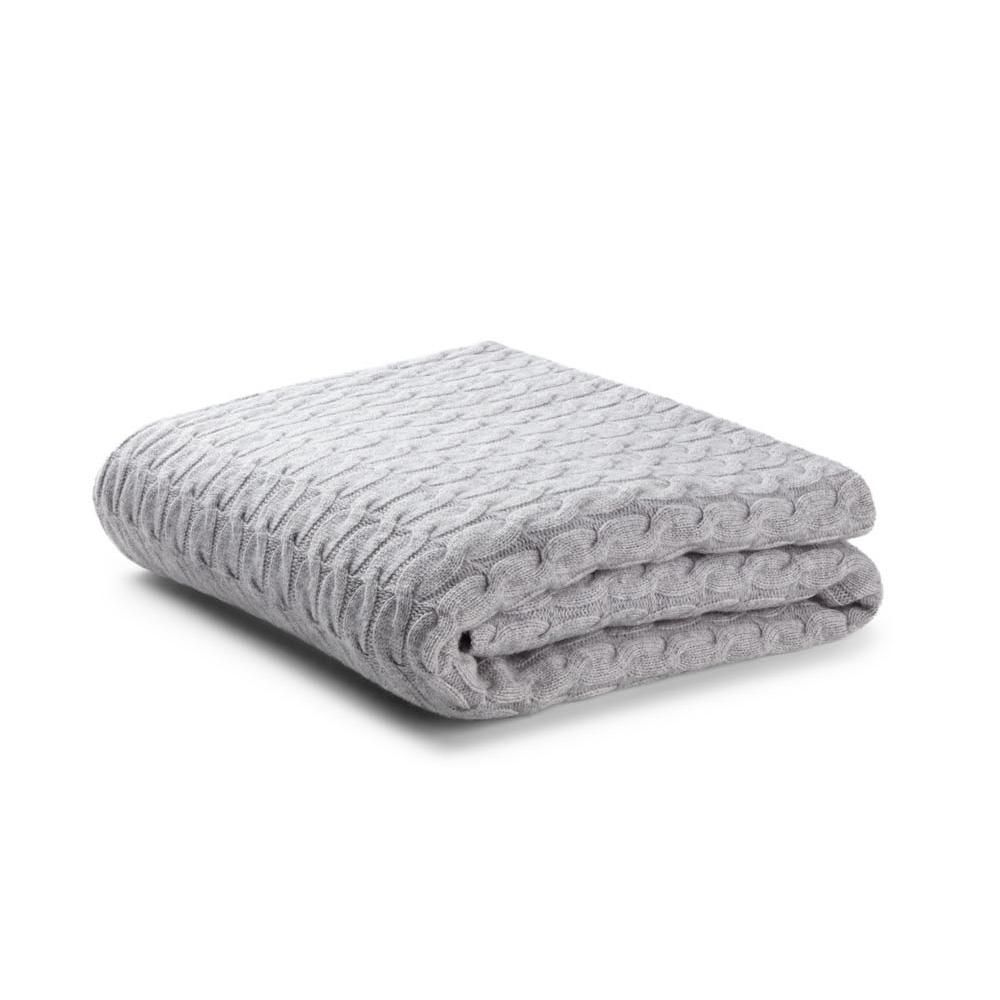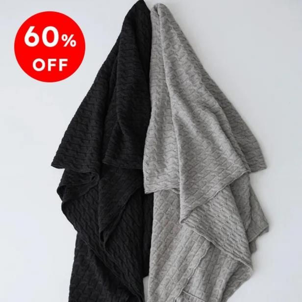 ウールと上質なカシミアで暖かい、ニットらしいケーブル編みが特徴的なスローブランケット。