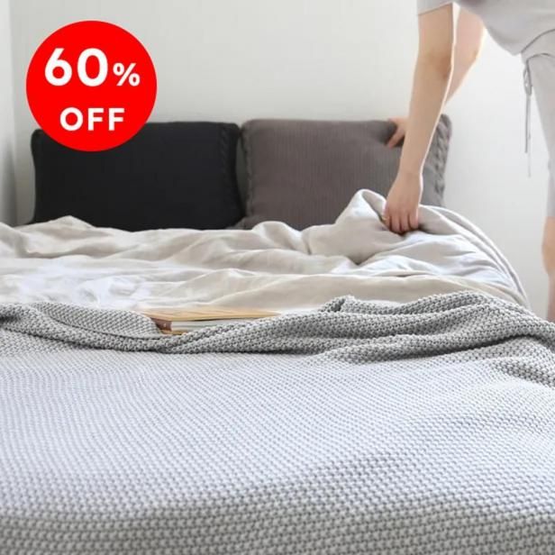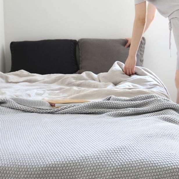 表面はぽこぽこした表情。ソファーカバーやブランケット、ベッドスローとしても。