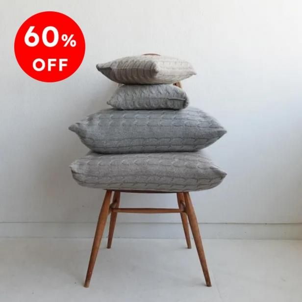 ネパールのカトマンズにあるワークショップで昔ながらの手編み機で織られています。電気をまったく使用せず作り上げることで、カシミア繊維を傷つけず、繊細なやわらかさがあるクッションになっています。