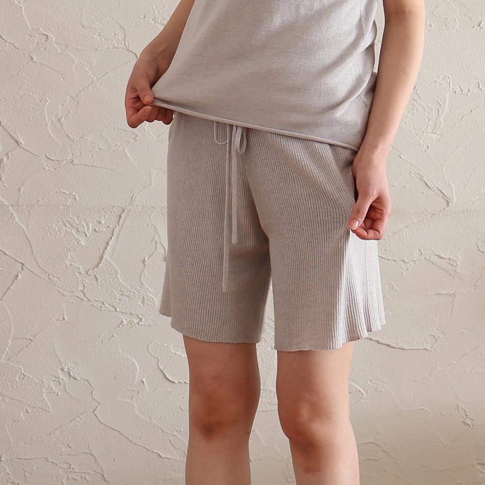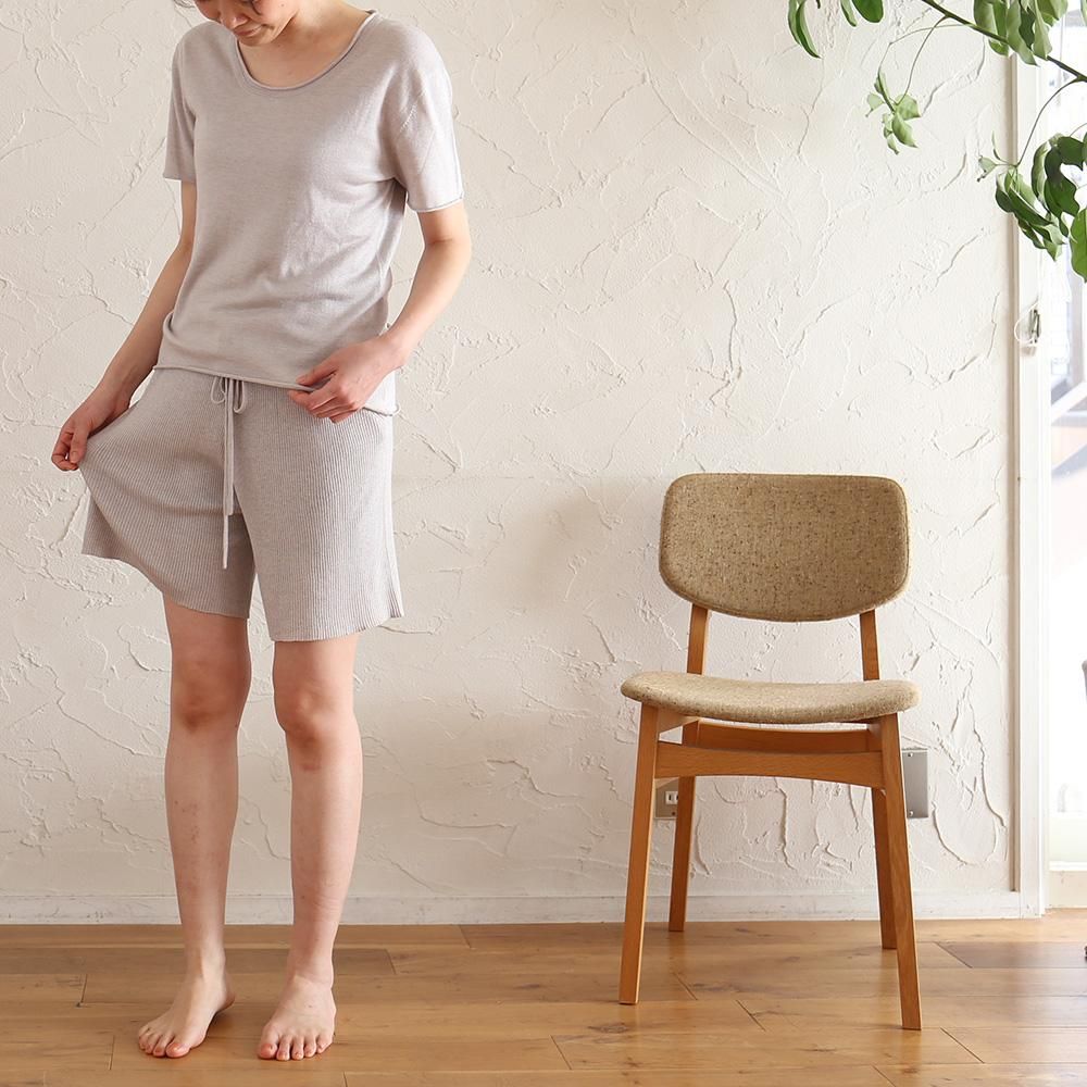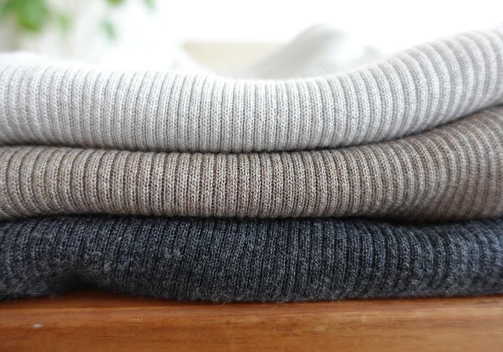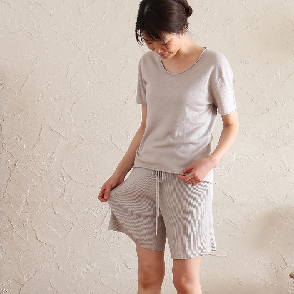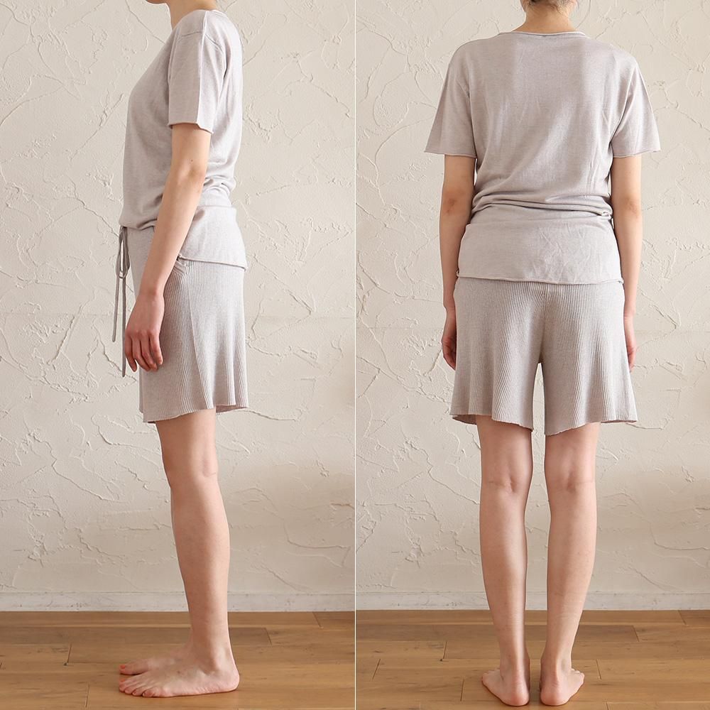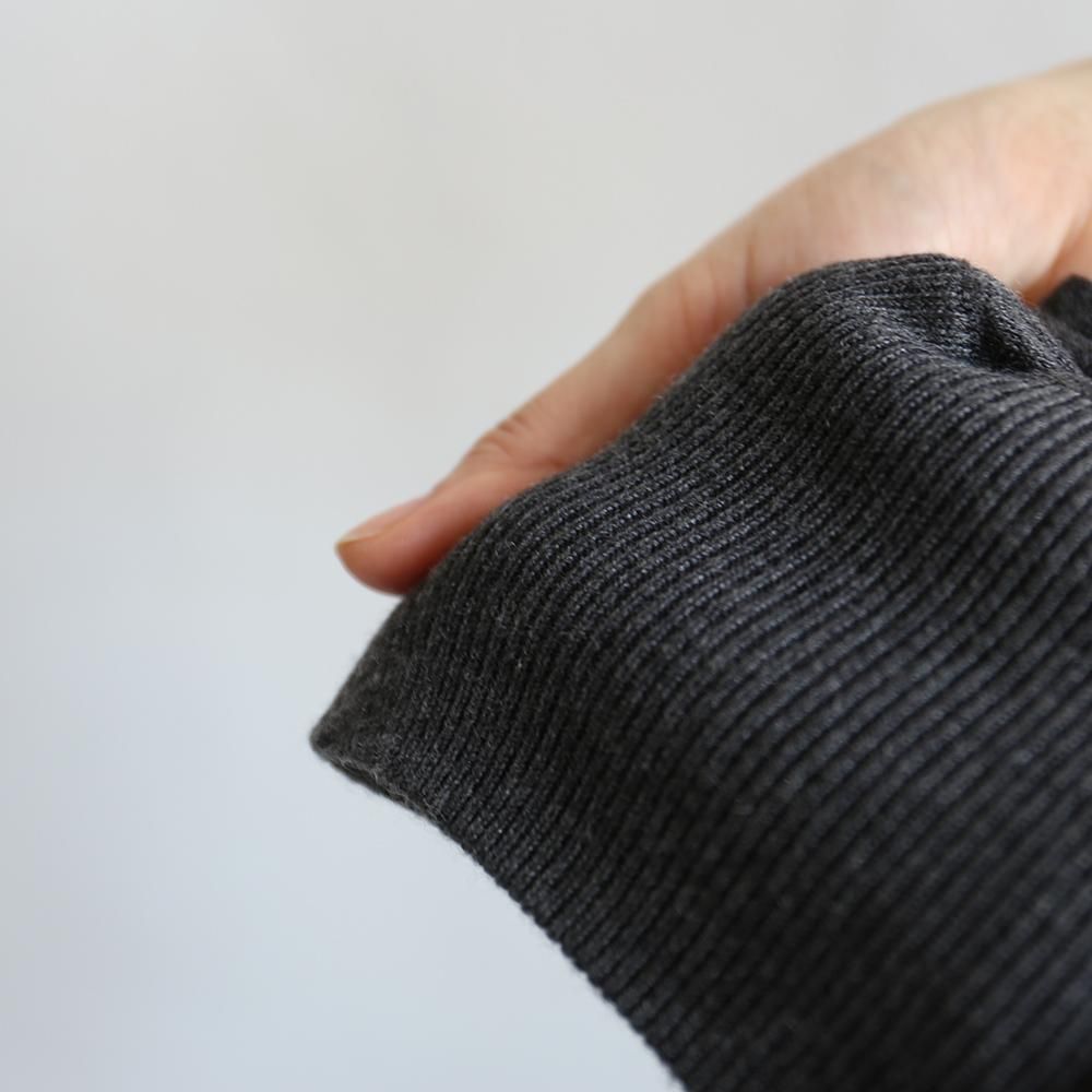 細かいリブと裾のエアリー感、縦方向に目がいくデザインで、すとんと細見えなデザインになっています。