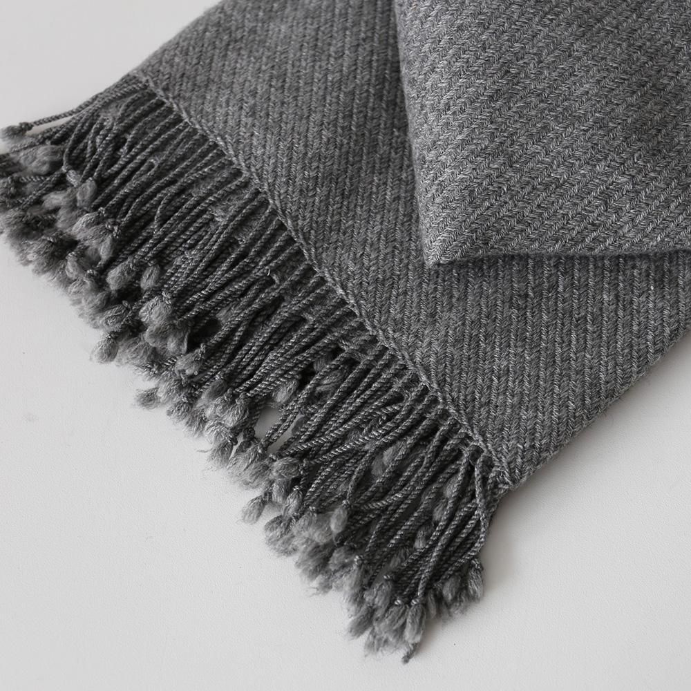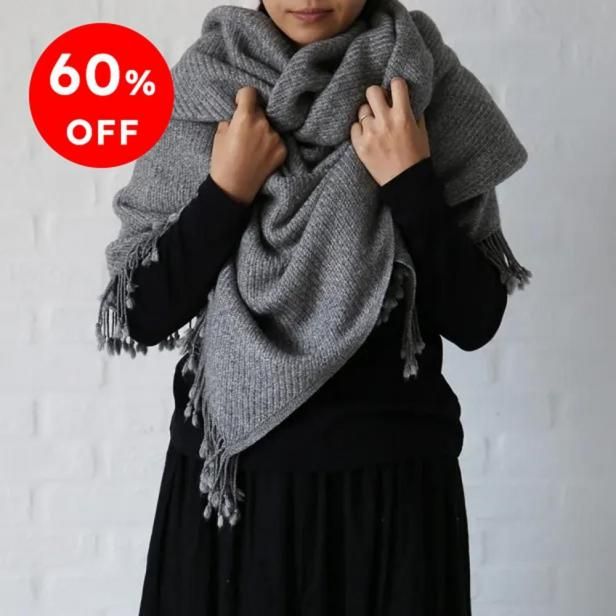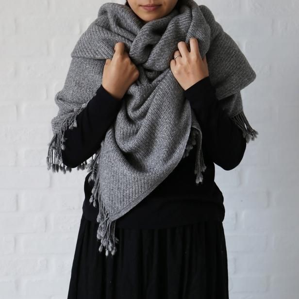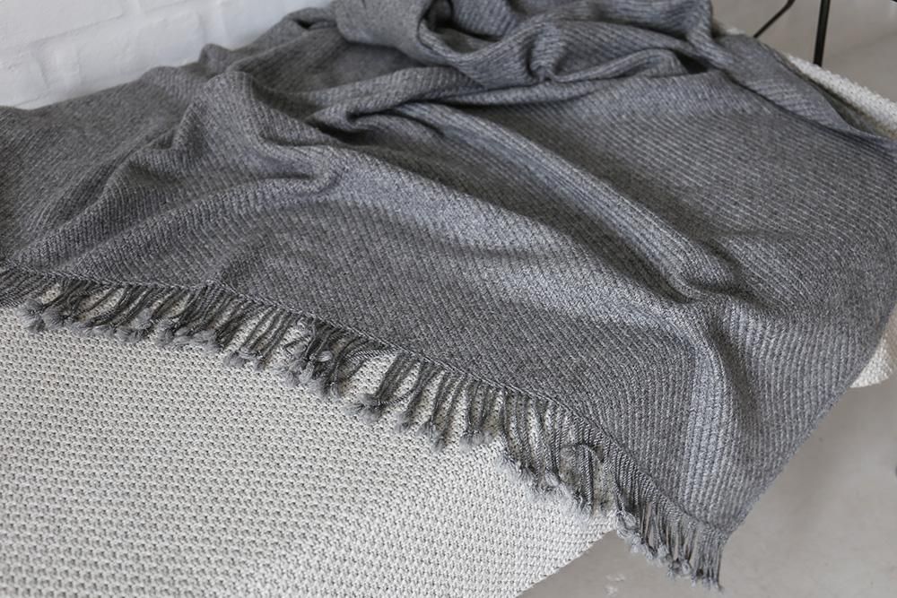 ボリュームのあるストールとして全身を包んでも、ソファカバーやひざ掛け、ベッドスローにも使えるサイズ感です。