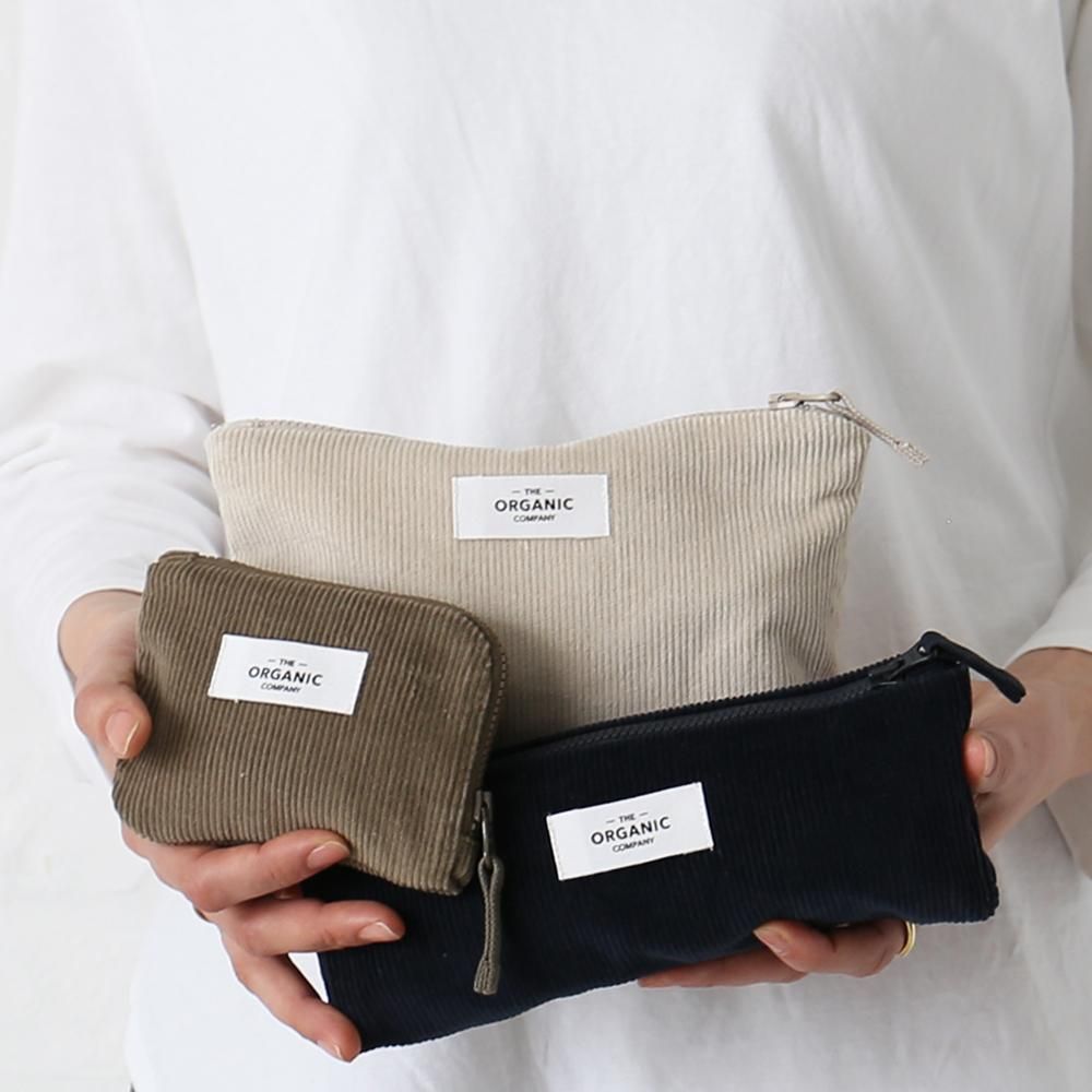 オーガニックコットンを使用したやさしい風合いのコーデュロイポーチ。