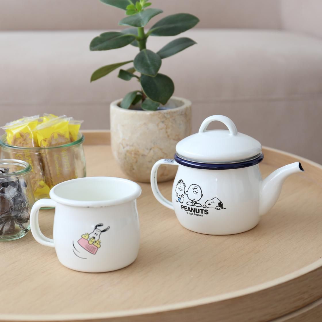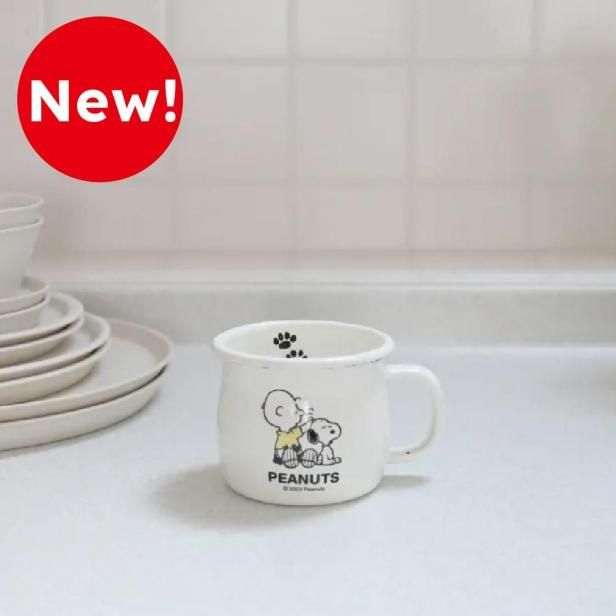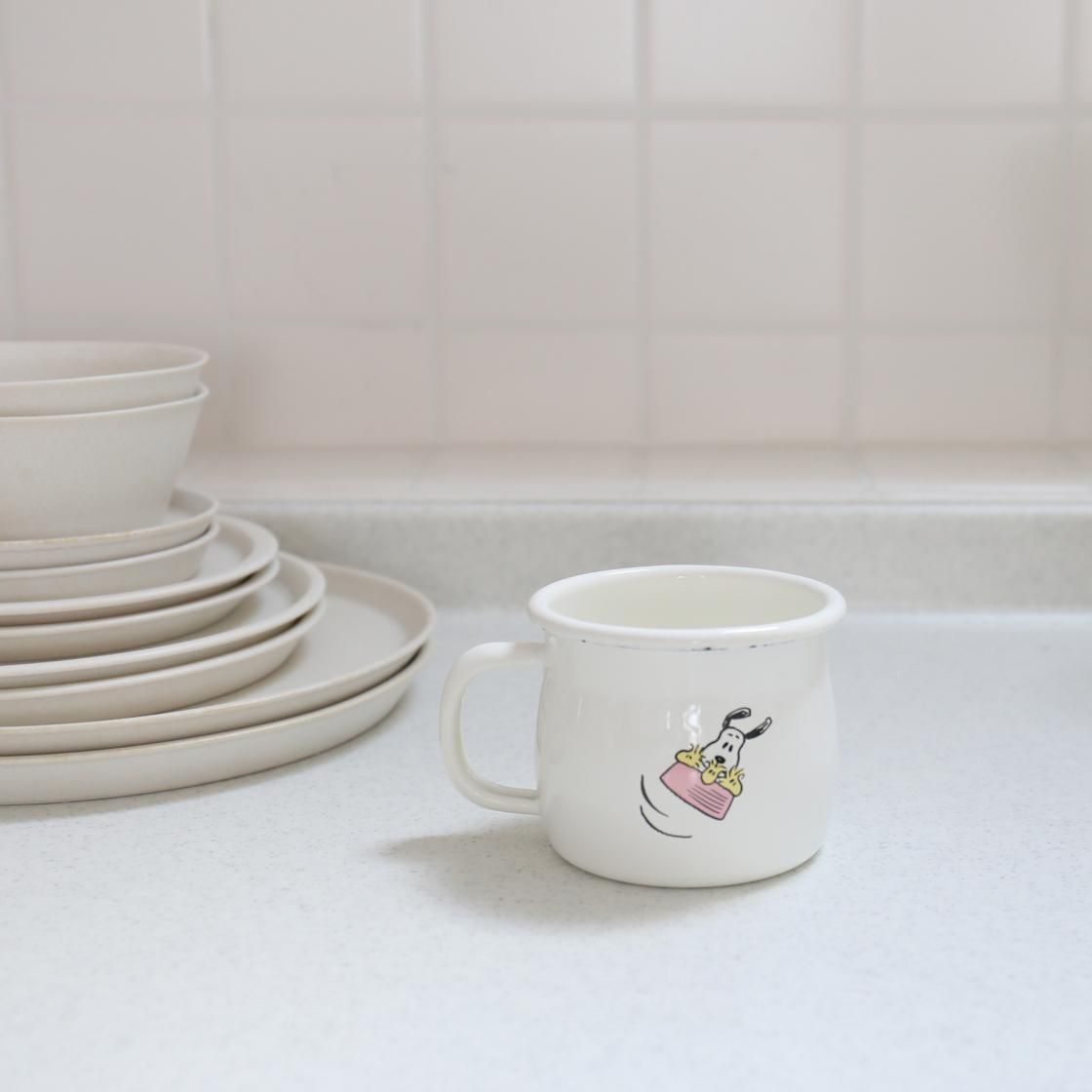 ほっとひと息♪スヌーピーのイラスト入りホーローマグカップ