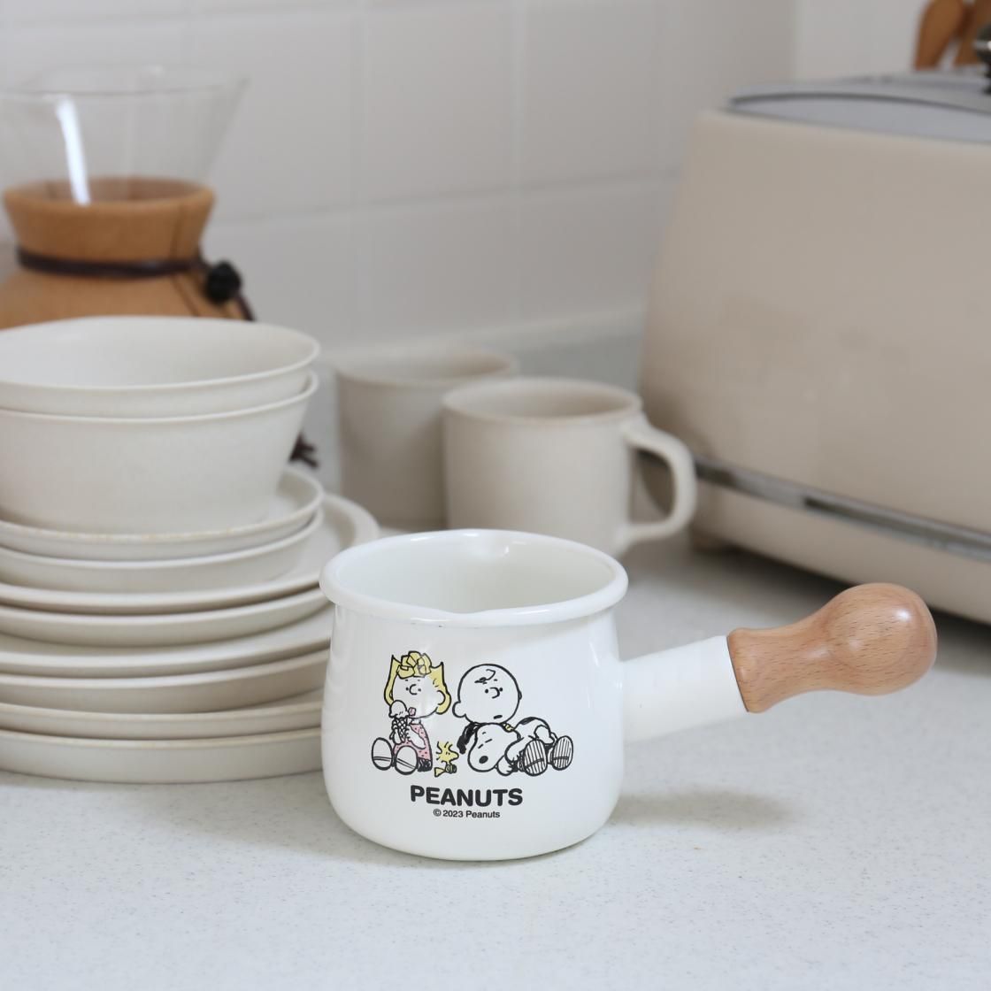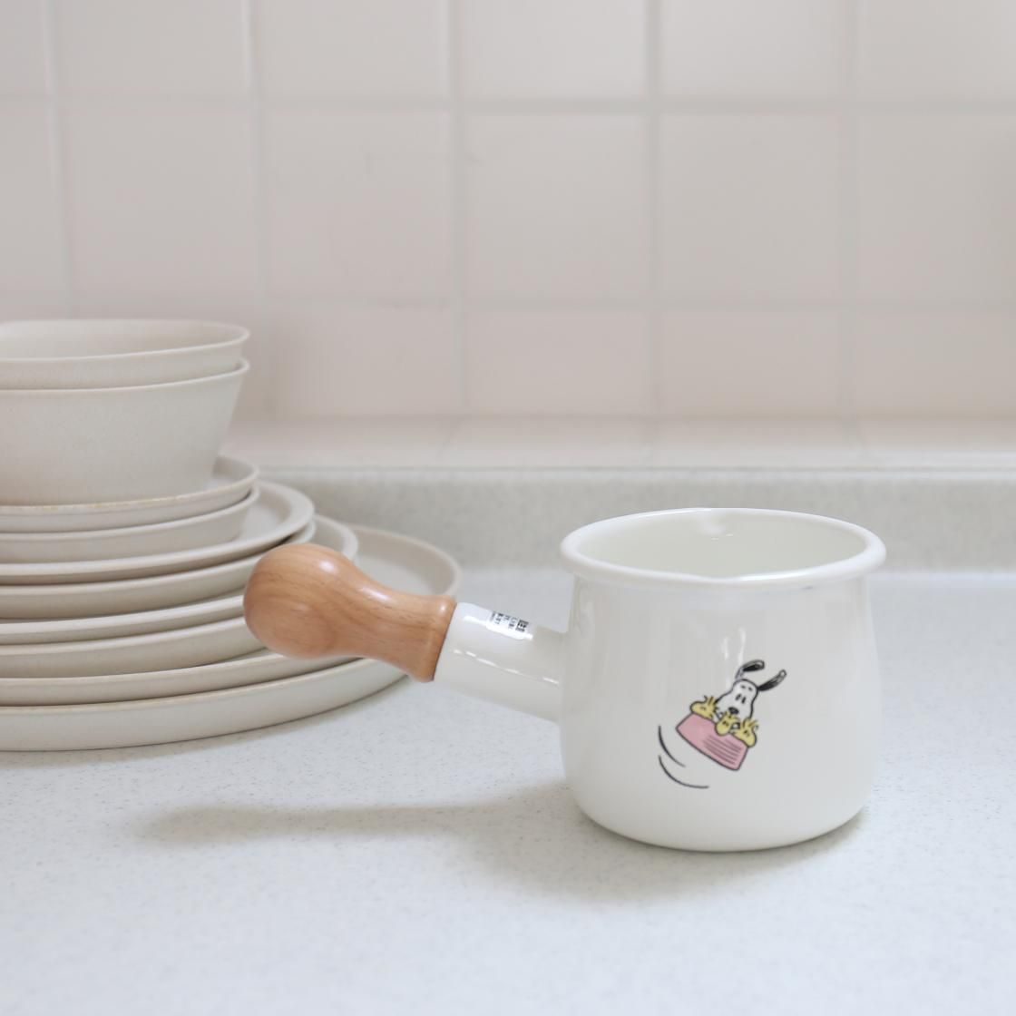 使い勝手のいいミニサイズのスヌーピーのイラスト入りホーローミルクパン