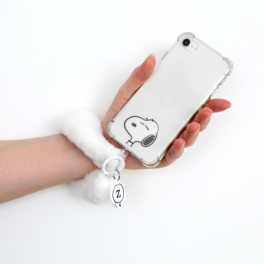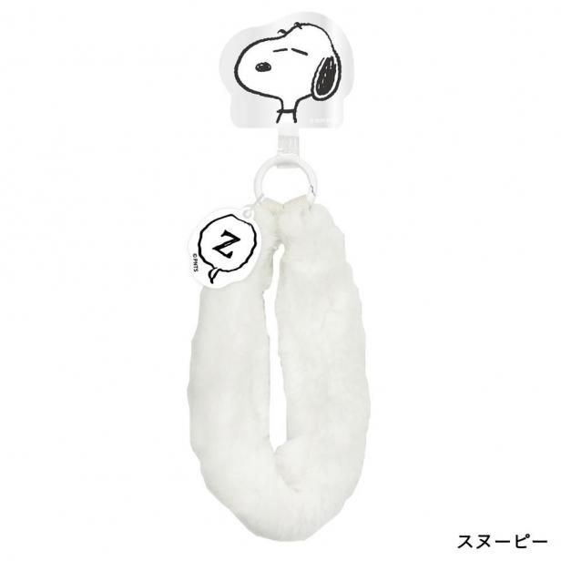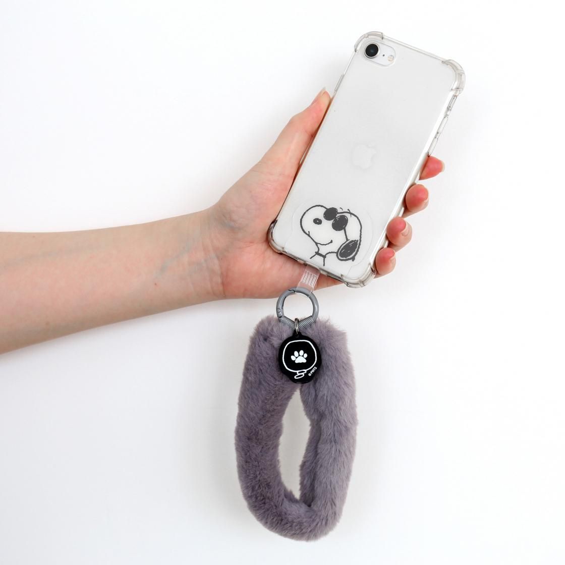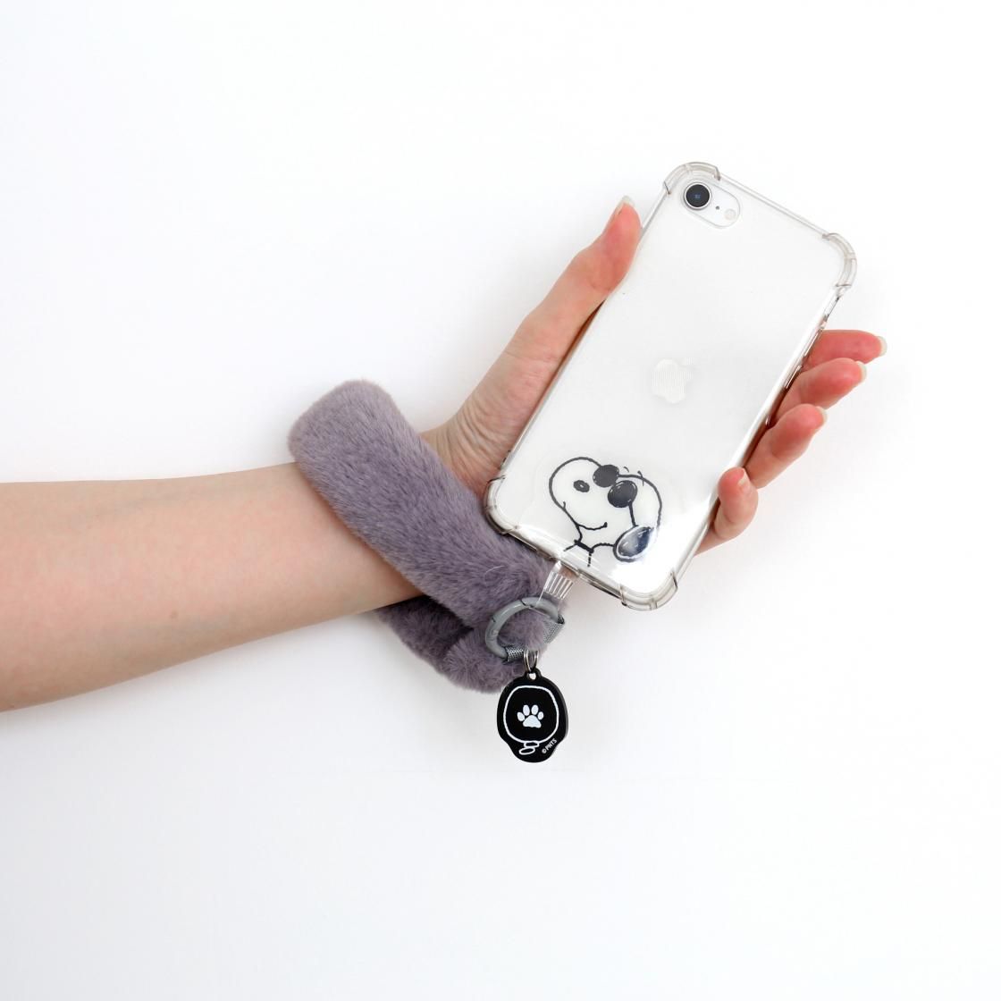 スヌーピーのふわふわファーが心地よいスマホ用ブレスレット。