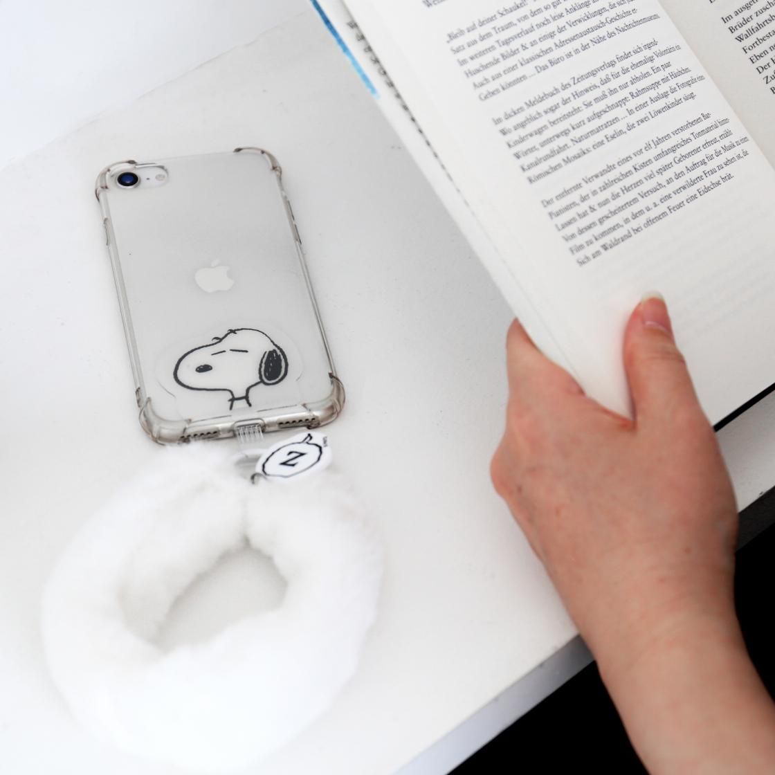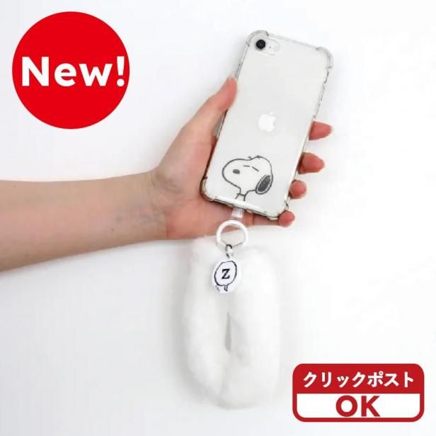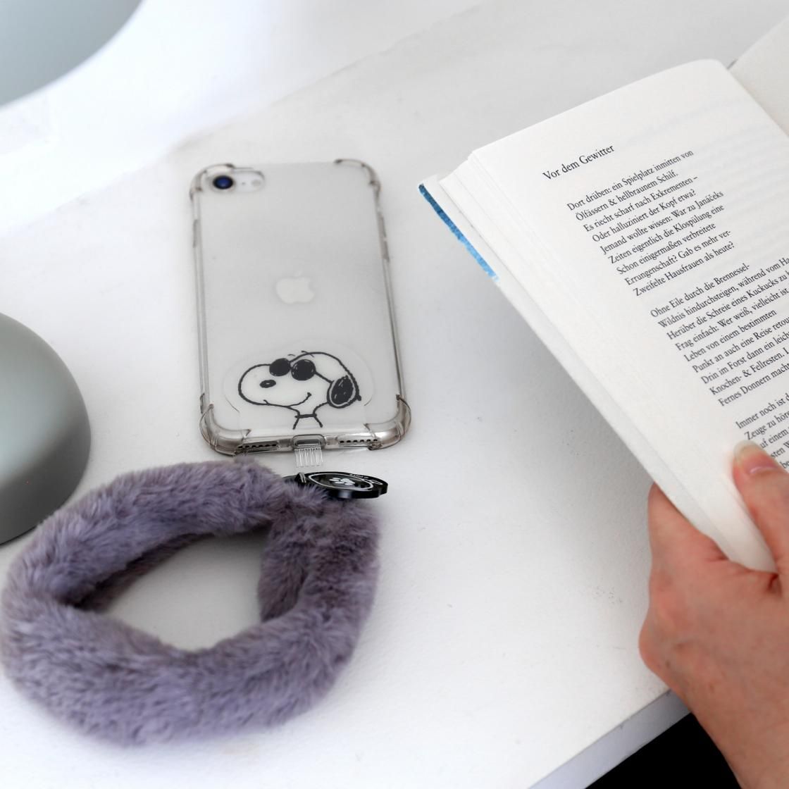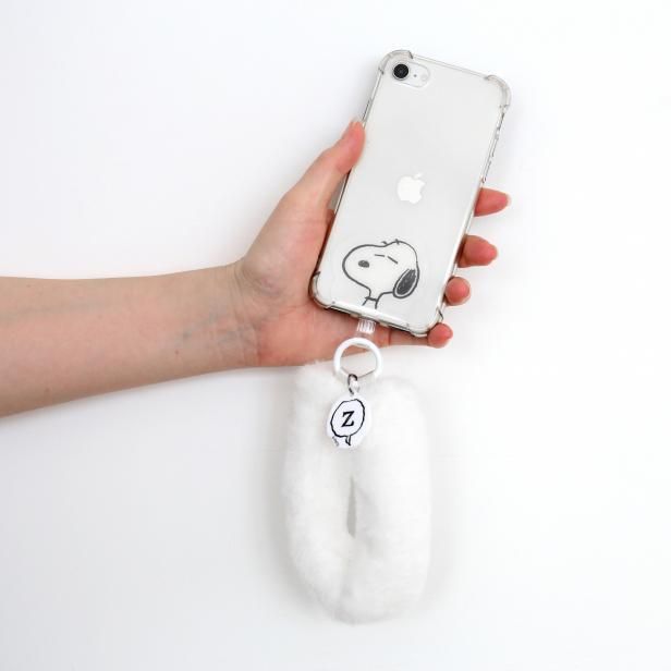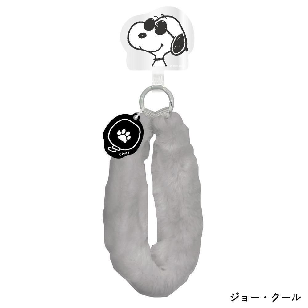 スヌーピーのふわふわファーが心地よいスマホ用ブレスレット。